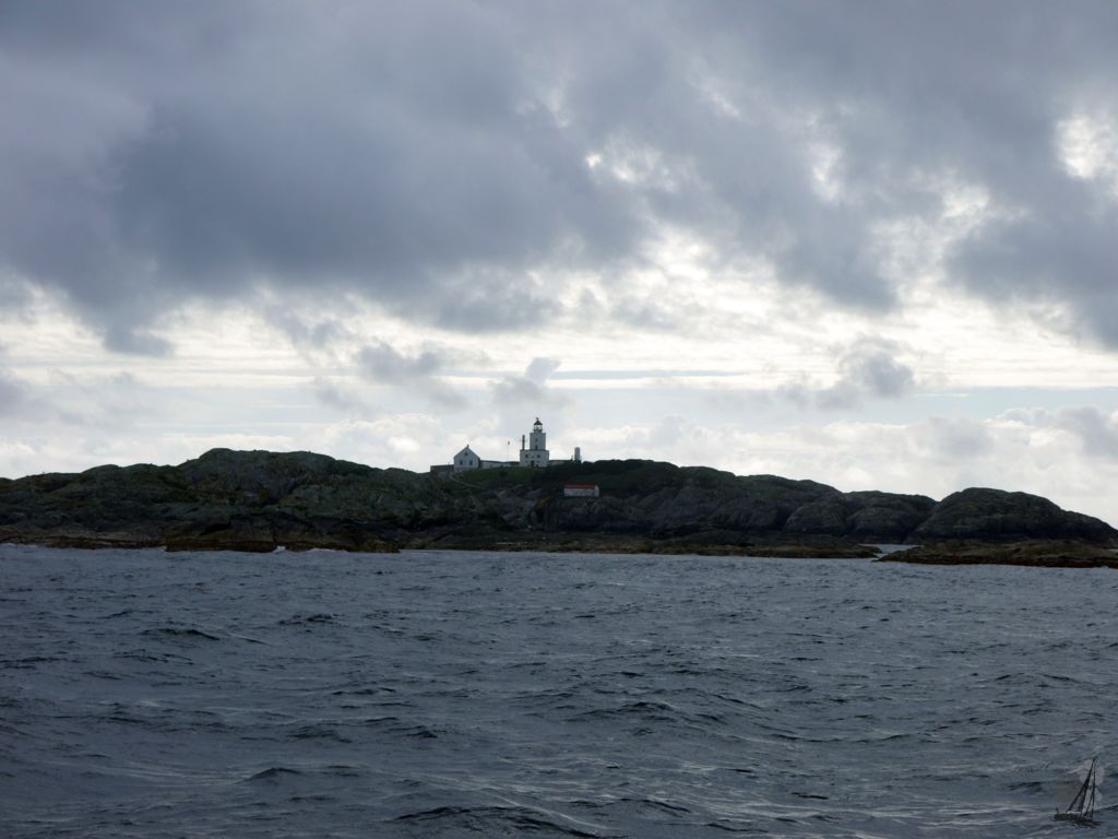 Also, zweites Reff im Groß und alles ganz locker, pirsche ich mich aus dem Schutz Haugesund’s raus. Über 20 Knoten wind und eine Mächtige Dünung. Aber es geht. Die Fleur fährt gut, mit Wind von schräg hinten. Immer deb Blick zum Himmel, ob da noch mal so ein Unwetter heranzieht. Nach 1.5 Stunden bin ich durch das gefährliche Gebiet durch. Entspannen und planen wie die nächsten 20 Meilen zu machen sind. Innen rum oder außen vorbei? Mit etwas flauem Gefühl entscheide ich mich für außen rum.