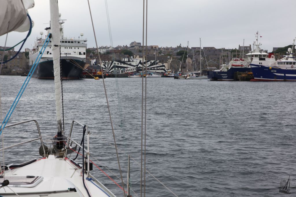 Es beginnt als Kaffeefahrt mit Sonne und flachem Wasser, später dann bei 20 Knoten Wind und mit 4 Knoten Strömung und 8 Knoten Fahrt in den Nordkanal von Lerwick eingelaufen. Vom Morgen auf den Abend zu schließen ist vergebene Mühe. Als trainierter, deutscher Skipper suche ich eine Route aus, definiere mir Ausweichhäfen, die Gezeiten und Strömungen schaue ich mir an – und wundere mich, dass doch alles anders kommt. Strömung bilden “BackEddies” (Rückströmungen) um Felsen und Landzungen, das Wetter ändert sich und der Wind wird von Land und Wasser abgelenkt. Die Leute hier scheinen alles lockerer zu nehmen. Fahren los und werden ankommen. Ungefähr da halt, wo es hin gehen sollte. Betonung auf ungefähr.