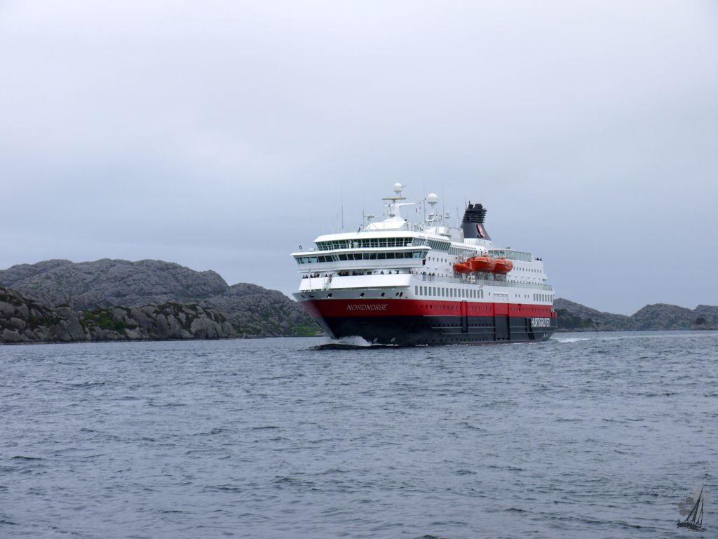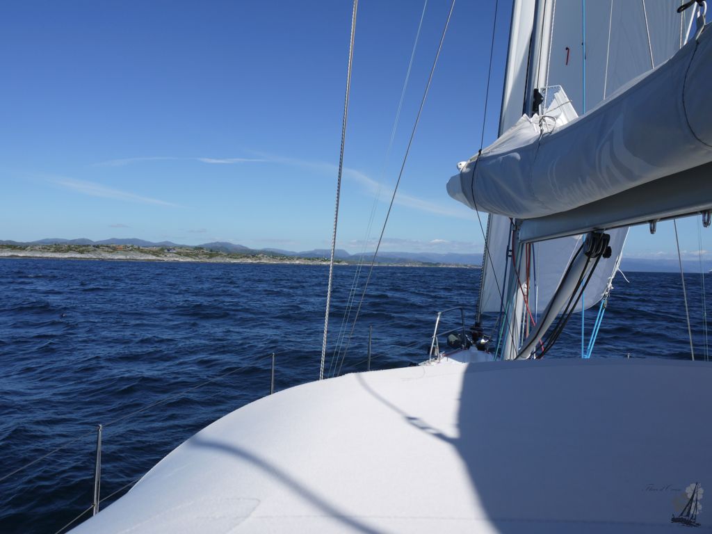 Im Norden wird das Wasser immer klarer und grüner. In der Biscaya war es blau, in der Nordsee bräunlich trüb, in der Ostee dunkel grau und im Skagerak fast schon schwarz. Nördlich von Bergen ist das Wasser dunkel, grünlich und kristall klar. Wenn es beim segeln rau wird, dann sagt der Norweger “Das Grün kommt über den Bug”.