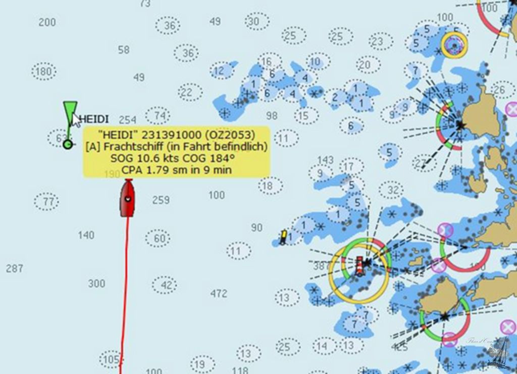 Seit 4 Stunden bei nahezu Flaute mit Motor unterwegs. Auf halber Strecke begegnet mir “Heidi” ;-). Jetzt hat auch der Wind auf West gedreht. Ich lasse den Motor noch etwas mit laufen, damit wir vorwärts kommen. Am Abend soll es regnen, da will ich vorher da sein.