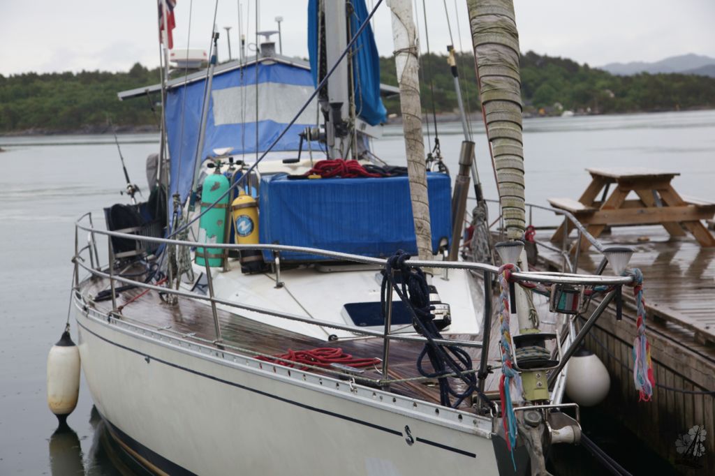 Heute wäre ich doch beinahe aus dem Boot gefallen. Von Mandal nach Egersund, mit mehr als 20 Knoten Wind genau von hinten. Dazu ordentliche Dünung (wohl ein Sturm irgendwo auf der Nordsee). Mit 7-8 Knoten geht’s dahin. Den “Berg runter” auf einer Welle, kommt die Fleur fast schon in’s gleiten. Das Groß ist schön weit draußen und mit einem Seil gegen umschlagen gesichert (Bullenstander). ich fahre etwas schräge vor dem Wind, damit’s nicht ganz so schlingert und rollt. Eine Halse steht an. Also wie gelernt, das Groß ganz dicht holen. Dazu muß natürlich der Bullenstander los gemacht werden, um den dann nachher auf der anderen Seite wieder anzubringen. Genau in dem Moment schiebt eine Welle und eine Böe kommt etwas aus einer anderen Richtung. Zack, schlägt das Groß rüber. Schneller als man schauen kann, und vor allem schneller als ich reagieren kann. Ich stehe der Großschot im Weg. Die schleudert mich mit massiver Wucht aus dem Cockpit gegen die Seereling. War erst mal da gelegen und habe blöd geschaut. Gute Seereling. Habe zwar ein paar blaue Flecken merhh und ein paar Abschürfungen, bin aber an Bord geblieben.