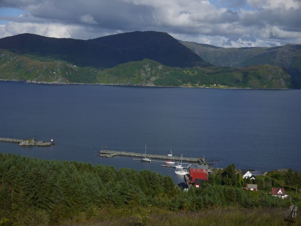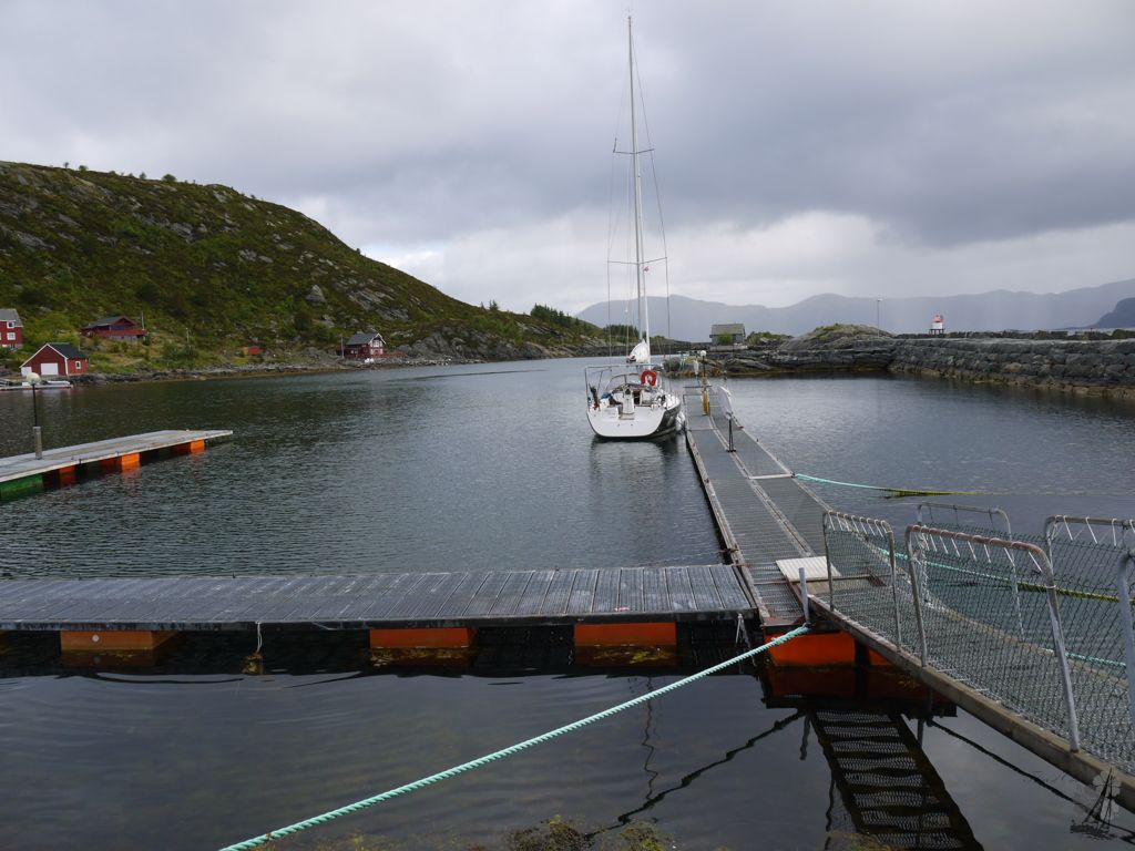 Nach dem ich nun in Silda 3 Tage auf etwas ruhigeres Wetter gewartet habe, geht’s heute los – um 06:00 bei Regen und 3°C Kälte. 12 Knoten Wind, leider immer aus Nord oder Nord-Ost. Also erst mal aus der Bucht motoren und dann fleißig kreuzen. Um Statt ist es dann auch tatsächlich recht holprig. Im “Keller” geht der Schrank mit den Töpfen auf. Monster geschepper, aber nix kaputt. Wenig später geht noch der Kleiderschrank auf. Chaos. Aus 25 Meilen Luftline werden beim kreuzen 49 Meilen. Um 16:30 bin ich dann endlich in Runde. Kleiner, netter Hafen. 150 NOK inklusive Strom ist fair.