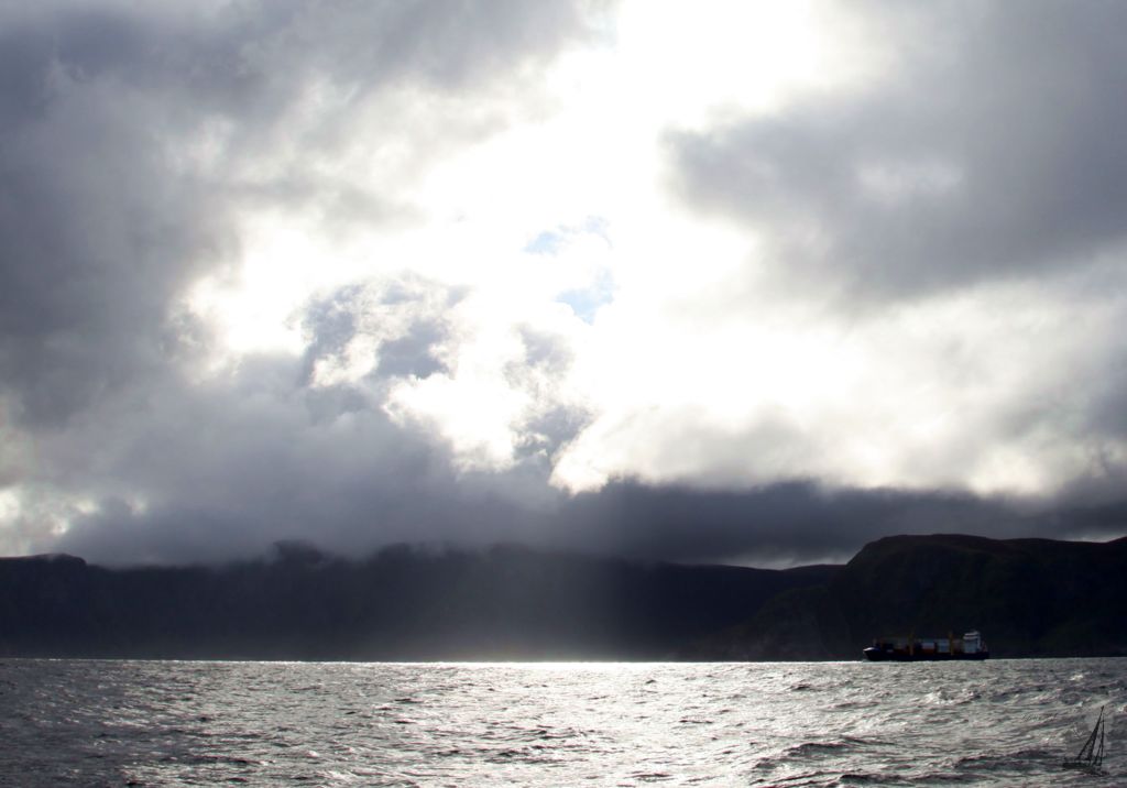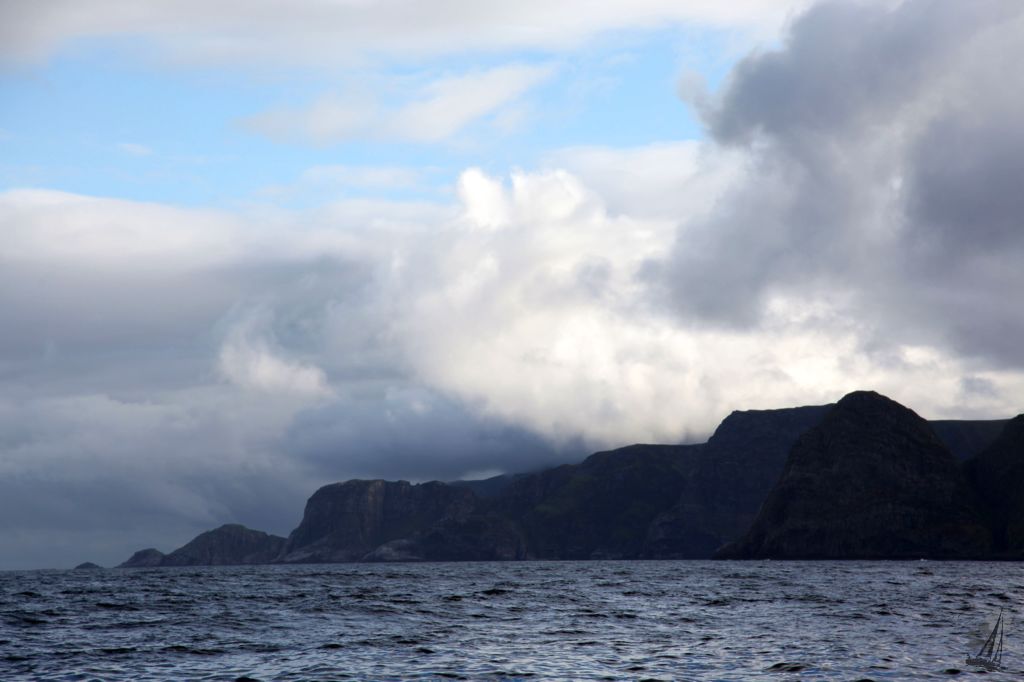 Heute ging’s mal wieder um’s Eck. Das berüchtigte Stadlandet. Der äußere westliche Felsen wird “Westkap” genannt. (Das Stadlandet ist die Island am nächsten gelegene Stelle des europäischen Festlandes. Der westlichste Punkt Norwegens ist dagegen Vardetangen)