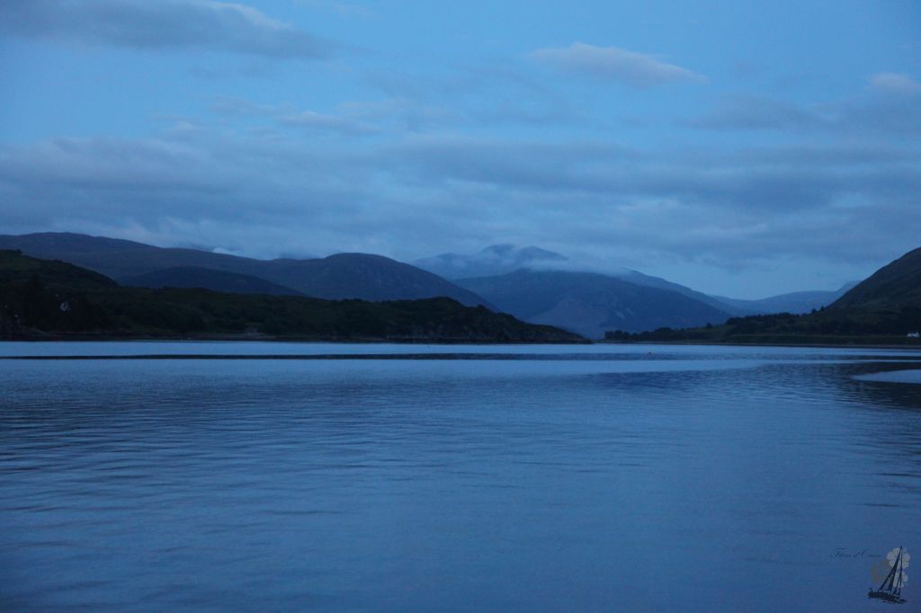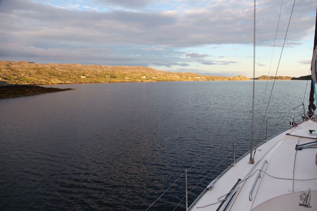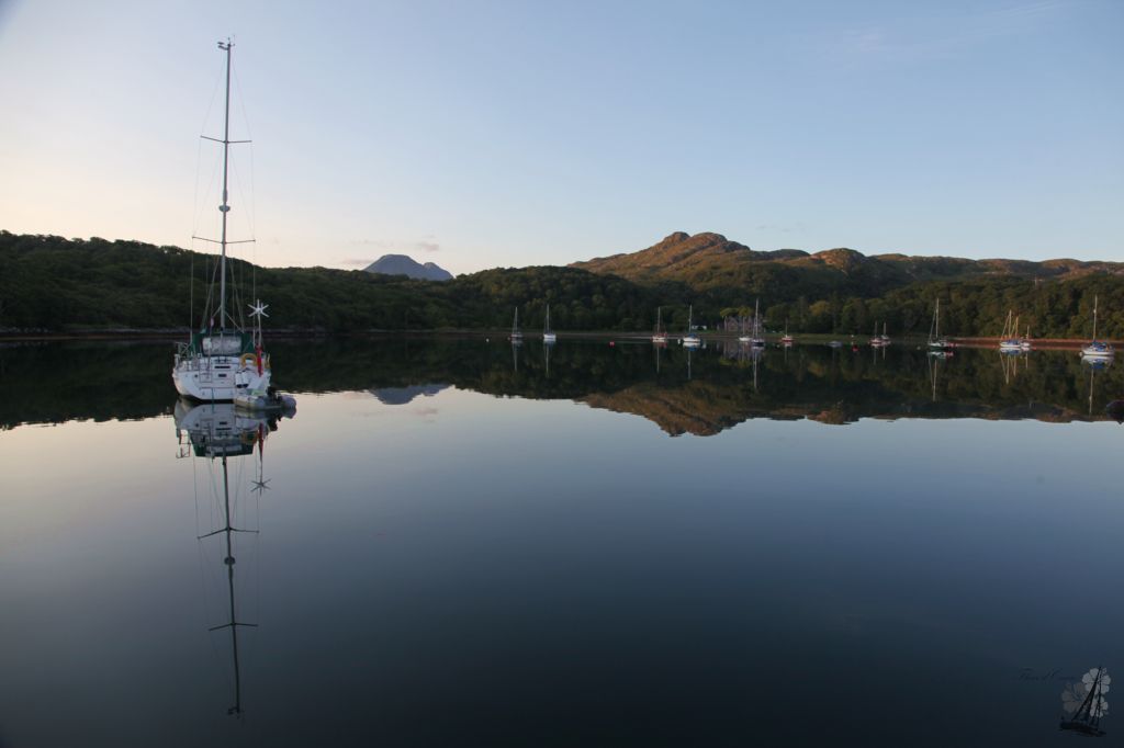 Über den “Little Minch” zu den Äußeren Hebriden, nach Loch Stockinish. Der Little Minch ist die Meerenge zwischen der Insel Skye und South Harris. Der Yachtsman Pilot schreibt dazu “… is a dangerous area of sea in bad weather conmditions. The effect of wind, tidal streams and the nature of the sea bottom results in steep waves…”. Nun, als ich da rüber bin, war es quasi “dead flat”. Kein Windhauch, geschweige denn die befürchteten steilen Wellen. In Loch Stockinish habe ich dann einen schönen Ankerplatz gefunden. Ruhig, einsam und eine Wahnsinns Landschaft.