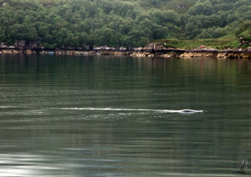 Ich stehe gerade in der Küche, da höre ich draußen ein lautes “Pfhuuu”. Delphin? Noch ein “Pfhuuu”. Eile die Treppe hoch, schaue raus. Ein riesiger Delphin 20 m vom Boot entfernt. Die Kamera gegriffen. Batterie alle. Andere Kamera, aber da war der Große auch schon 150m im Kielwasser entfernt. Wende. Verfolgungskurs. Leider ist er dann nicht mehr aufgetaucht. Coole Sache!