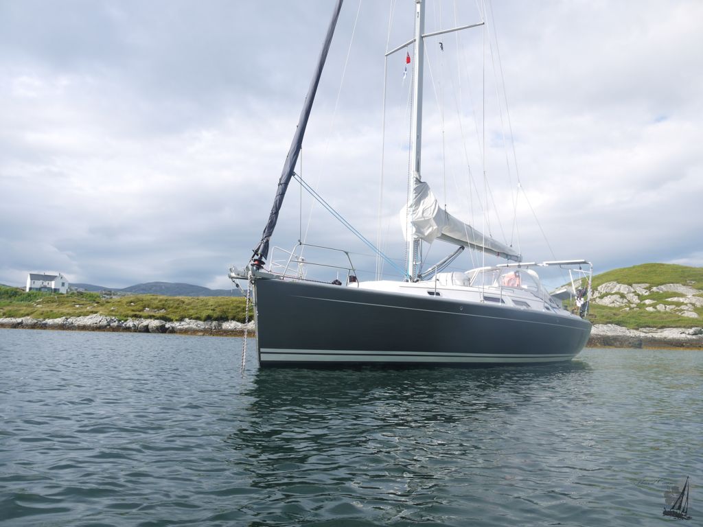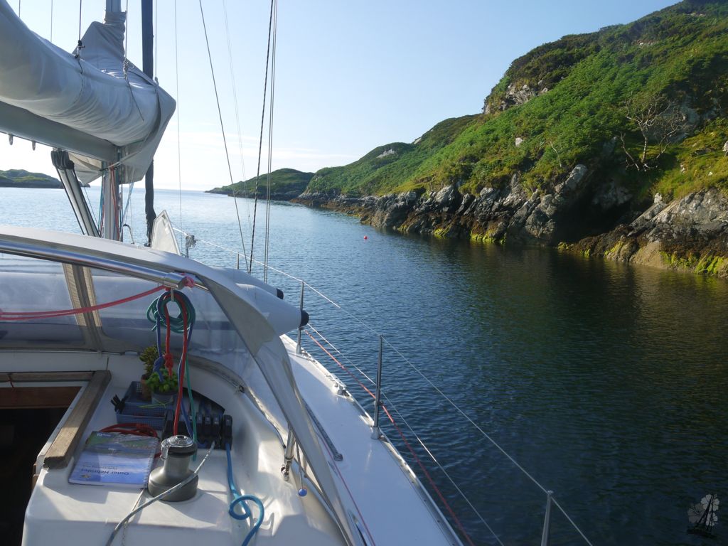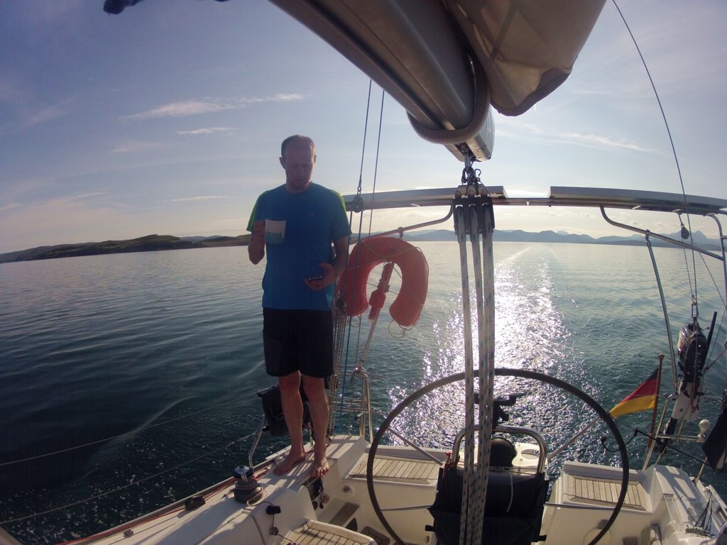 Epic sailing in den schottischen Gewässern rüber zu den Outer Hebrides. Leichter Wind, 5 Knoten Fahrt, Sonnenschein, 22°C, T-Shirt & kurze Hose und die malerischen Berge im Hintergrund. Seals, Papageitaucher, Möwen. Ein Delphin schaut neugierig vorbei. Vielleicht taucht noch ein Orca auf? So könnte es nun weiter gehen!